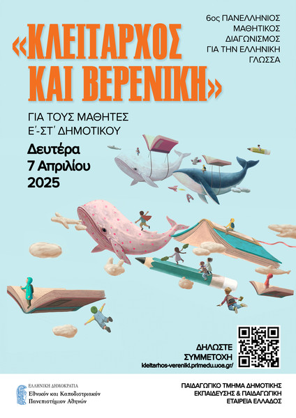 Καλή αντάμωση, με τη νέα σχολική χρονιά, στον 7ο Πανελλήνιο Μαθητικό Διαγωνισμό Ελληνικής Γλώσσας «Κλείταρχος και Βερενίκη», που θα διεξαχθεί τη Δευτέρα 30 Μαρτίου του 2026.