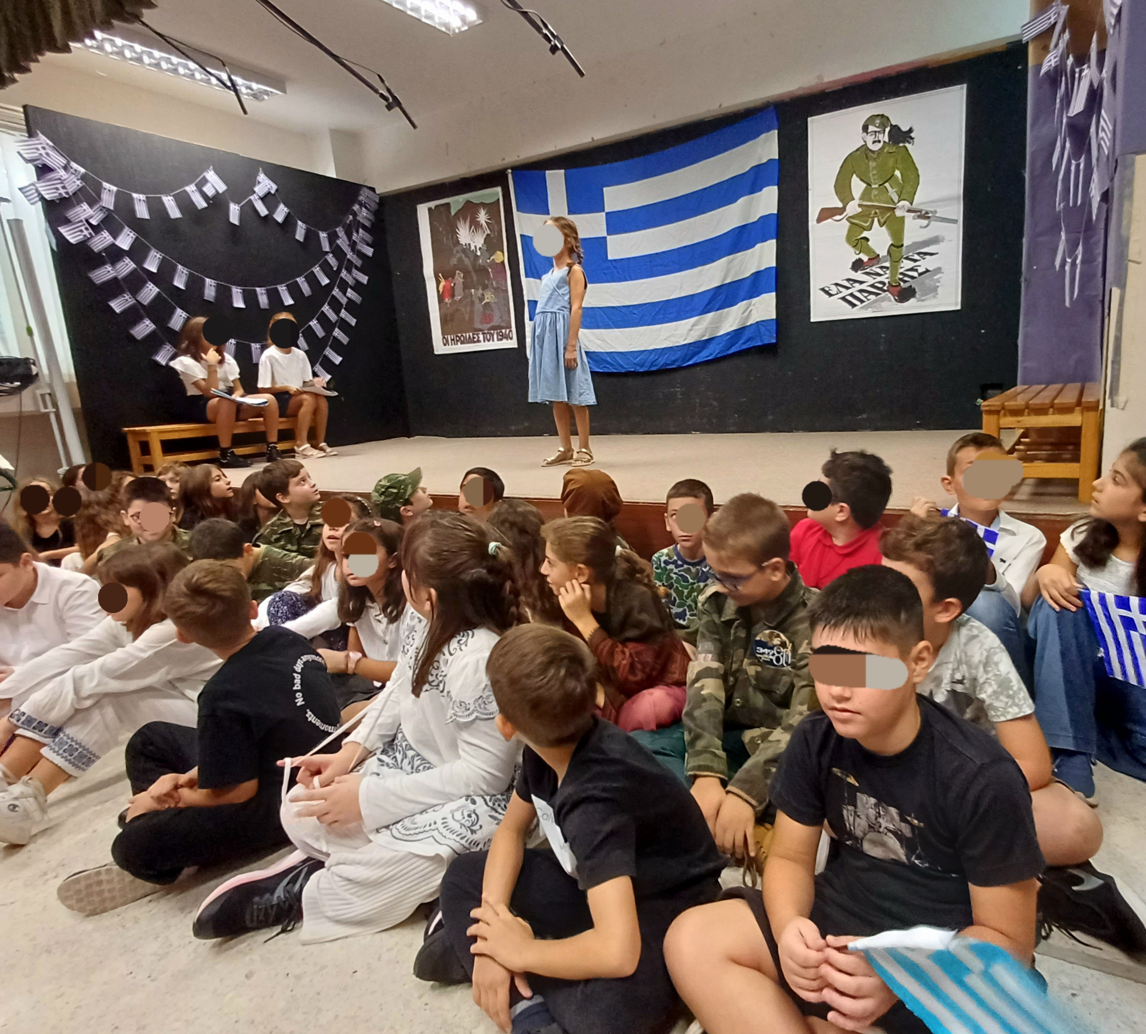 Την Παρασκευή 27 Οκτωβρίου 2023 οι μαθητές και οι μαθήτριες της Δ΄τάξης του Σχολείου μας υποδέχθηκαν στην αίθουσα εκδηλώσεων του Σχολείου εκπαιδευτικούς, γονείς, κηδεμόνες και μαθητές στη γιορτούλα που ετοίμασαν με πολλή αγάπη και μεράκι για να τιμήσουν την 83η επέτειο της 28ης Οκτωβρίου 1940.