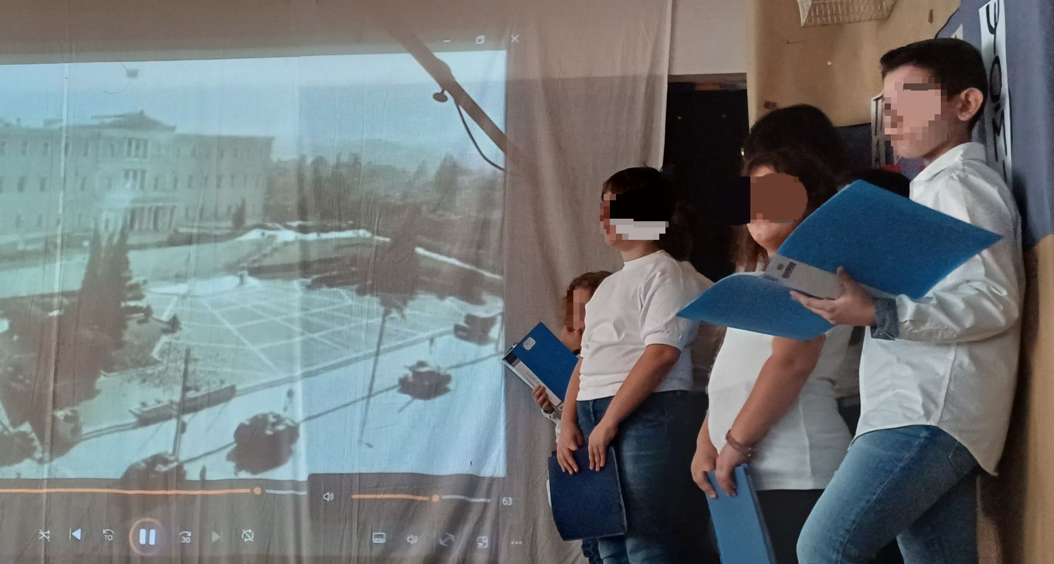 Πενήντα χρόνια συμπληρώθηκαν εφέτος από την εξέγερση των φοιτητών του Πολυτεχνείου του ΄73 κατά της δικτατορίας και στο σχολείο μας οι μαθητές της Ε΄ τάξης ετοίμασαν μια εορτή μνήμης και τιμής για τους πρωτεργάτες εκείνου του αγώνα για δημοκρατία, δικαιοσύνη και ελευθερία.