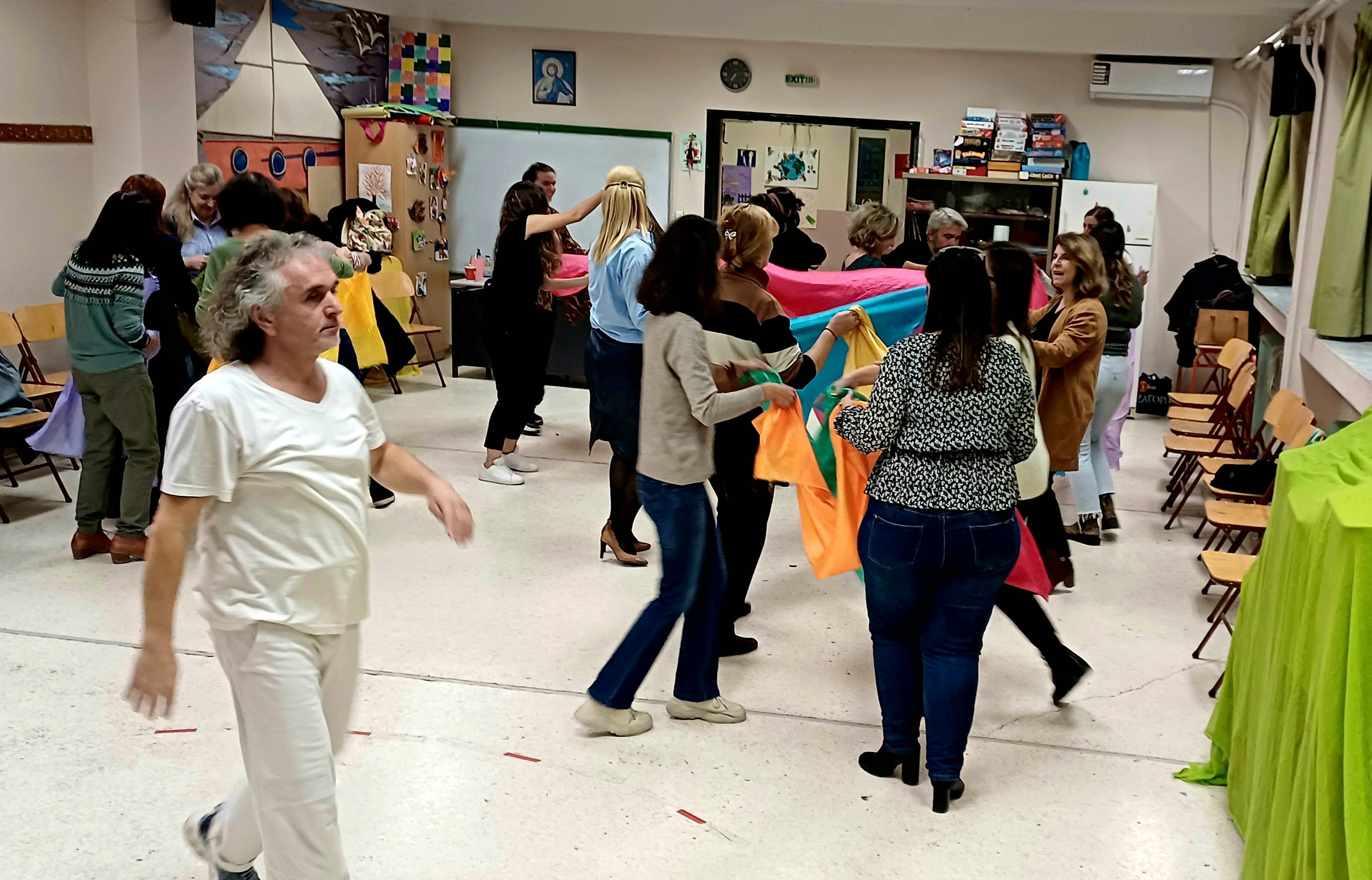 Βιωματικό επιμορφωτικό εργαστήριο θεατρικού παιχνιδιού για τους εκπαιδευτικούς της Α/θμιας Εκπ/σης πραγματοποιήθηκε την Παρασκευή 24 Νοεμβρίου2023 το απόγευμα στο σχολείο μας με πρωτοβουλία της Συμβούλου Εκπαίδευσης Παιδαγωγικής Ευθύνης κ. Χρονοπούλου Αθανασίας και εμψυχωτή του εργαστηρίου το δάσκαλο και εμψυχωτή θεατρικού παιχνιδιού-παιδαγωγικής-θεάτρου-performer art κ. Κυρίτση Παναγιώτη με θέμα: «Εμψυχώνοντας το μαθητή/τη μαθήτρια να αναλάβει ενεργό ρόλο στην εκπαιδευτική διαδικασία»