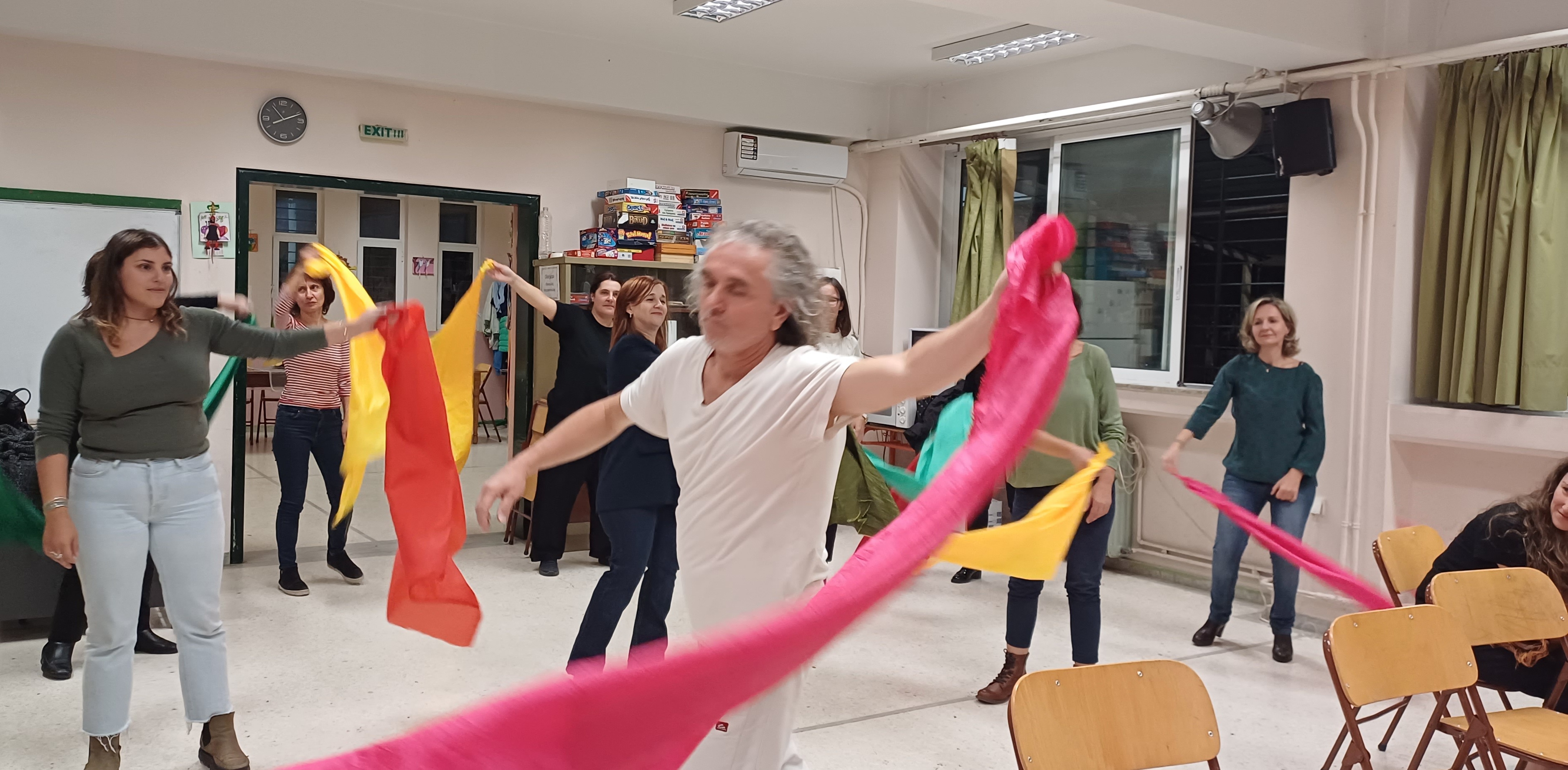 Βιωματικό επιμορφωτικό εργαστήριο θεατρικού παιχνιδιού για τους εκπαιδευτικούς της Α/θμιας Εκπ/σης πραγματοποιήθηκε την Παρασκευή 24 Νοεμβρίου2023 το απόγευμα στο σχολείο μας με πρωτοβουλία της Συμβούλου Εκπαίδευσης Παιδαγωγικής Ευθύνης κ. Χρονοπούλου Αθανασίας και εμψυχωτή του εργαστηρίου το δάσκαλο και εμψυχωτή θεατρικού παιχνιδιού-παιδαγωγικής-θεάτρου-performer art κ. Κυρίτση Παναγιώτη με θέμα: «Εμψυχώνοντας το μαθητή/τη μαθήτρια να αναλάβει ενεργό ρόλο στην εκπαιδευτική διαδικασία»