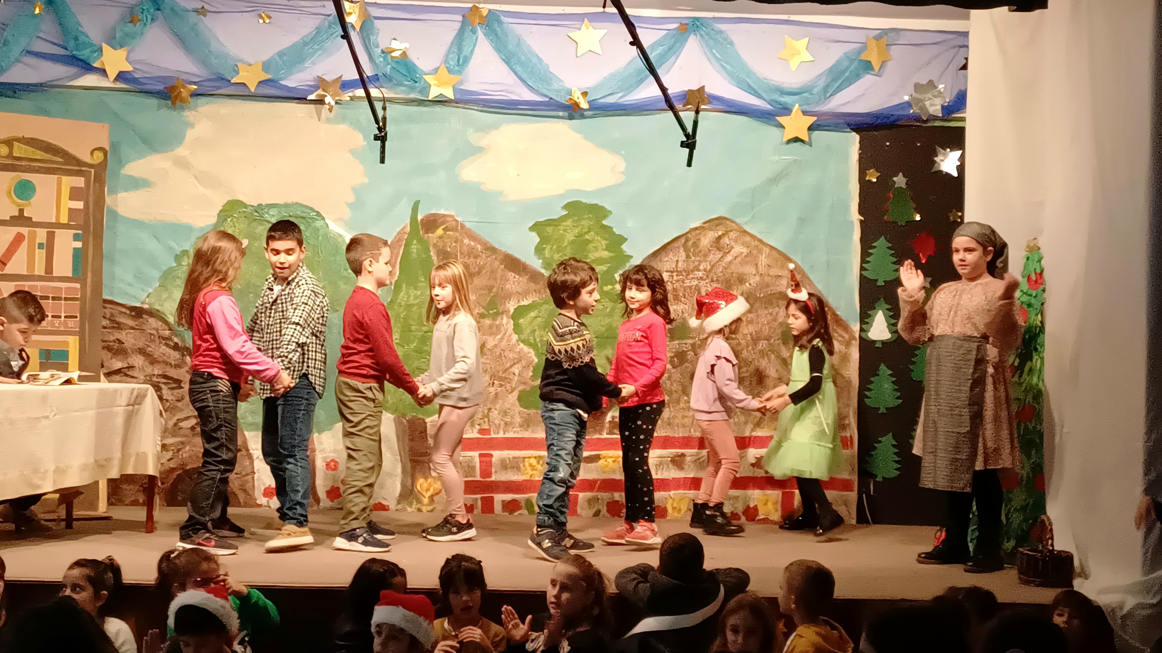 Αλλά…γιατί να τα ξεμπερδέψει; Μια χαρά μπορεί να τα συνθέσει και να φτιάξει ένα νέο θεατρικό έργο πολύ πιο ωραίο, διασκεδαστικό και συνάμα διδακτικό! Αυτό σκέφτηκαν και οι δασκάλες τους η κ. Ελένη Σταματάκου και η κ. Νίκη Κρόμπα κι έτσι αποφάσισαν να ενώσουν τις δυο όμορφες χριστουγεννιάτικες ιστορίες, της καλοσυνάτης κυρα-Καλής με τους δώδεκα μήνες, του γνωστού λαϊκού παραμυθιού και του γέρου Σκρουτζ, του στρυφνού, ηλικιωμένου τσιγκούνη, από το διαχρονικό και επίκαιρο έργο του σπουδαίου συγγραφέα Καρόλου Ντίκενς, σε μία υπέροχη και πρωτότυπη διασκευή με πολλά μηνύματα, που αγγίζουν την ψυχή μικρών και μεγάλων. Με την πολύτιμη βοήθεια τους οι μικροί μαθητές της Β΄ τάξης επιστρατεύοντας τη φαντασία και το δημιουργικό τους ταλέντο και δίνοντας τον καλύτερό τους εαυτό κατάφεραν να εντυπωσιάσουν μικρούς και μεγάλους που κατέκλυσαν την αίθουσα εκδηλώσεων του σχολείου μας το βράδυ της Πέμπτης 21 Δεκεμβρίου και να αποσπάσουν το πιο θερμό χειροκρότημα! Ήταν δε τόσο καλοί που σκέφτηκαν να ξαναπαίξουν την παράσταση αυτή και την επόμενη ημέρα, για τους μαθητές του σχολείου που δεν μπόρεσαν να την παρακολουθήσουν, σκορπίζοντας έτσι χαμόγελα χαράς και ευτυχίας.