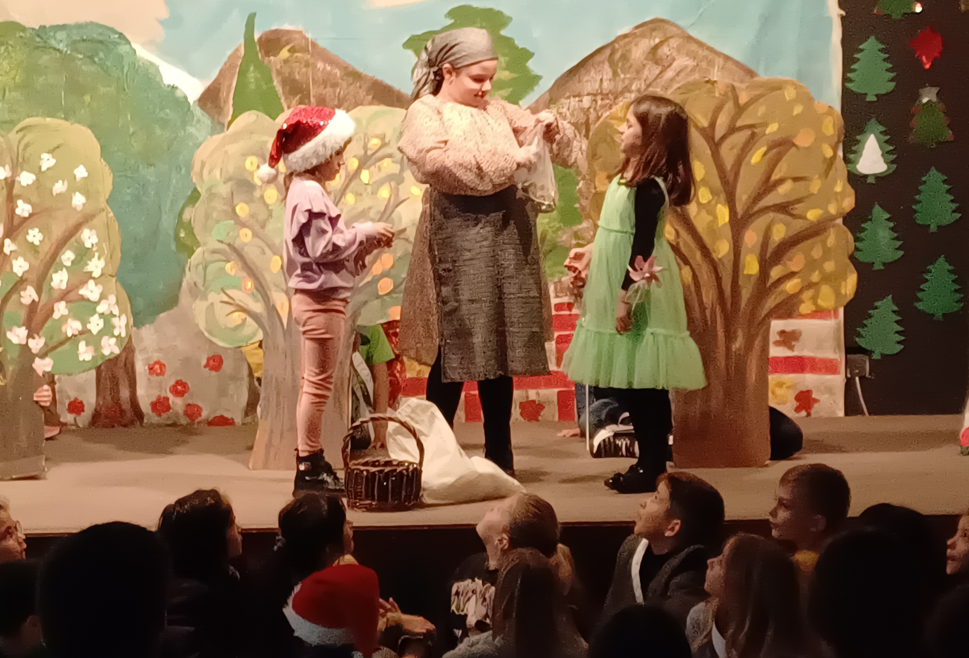 Αλλά…γιατί να τα ξεμπερδέψει; Μια χαρά μπορεί να τα συνθέσει και να φτιάξει ένα νέο θεατρικό έργο πολύ πιο ωραίο, διασκεδαστικό και συνάμα διδακτικό! Αυτό σκέφτηκαν και οι δασκάλες τους η κ. Ελένη Σταματάκου και η κ. Νίκη Κρόμπα κι έτσι αποφάσισαν να ενώσουν τις δυο όμορφες χριστουγεννιάτικες ιστορίες, της καλοσυνάτης κυρα-Καλής με τους δώδεκα μήνες, του γνωστού λαϊκού παραμυθιού και του γέρου Σκρουτζ, του στρυφνού, ηλικιωμένου τσιγκούνη, από το διαχρονικό και επίκαιρο έργο του σπουδαίου συγγραφέα Καρόλου Ντίκενς, σε μία υπέροχη και πρωτότυπη διασκευή με πολλά μηνύματα, που αγγίζουν την ψυχή μικρών και μεγάλων. Με την πολύτιμη βοήθεια τους οι μικροί μαθητές της Β΄ τάξης επιστρατεύοντας τη φαντασία και το δημιουργικό τους ταλέντο και δίνοντας τον καλύτερό τους εαυτό κατάφεραν να εντυπωσιάσουν μικρούς και μεγάλους που κατέκλυσαν την αίθουσα εκδηλώσεων του σχολείου μας το βράδυ της Πέμπτης 21 Δεκεμβρίου και να αποσπάσουν το πιο θερμό χειροκρότημα! Ήταν δε τόσο καλοί που σκέφτηκαν να ξαναπαίξουν την παράσταση αυτή και την επόμενη ημέρα, για τους μαθητές του σχολείου που δεν μπόρεσαν να την παρακολουθήσουν, σκορπίζοντας έτσι χαμόγελα χαράς και ευτυχίας.
