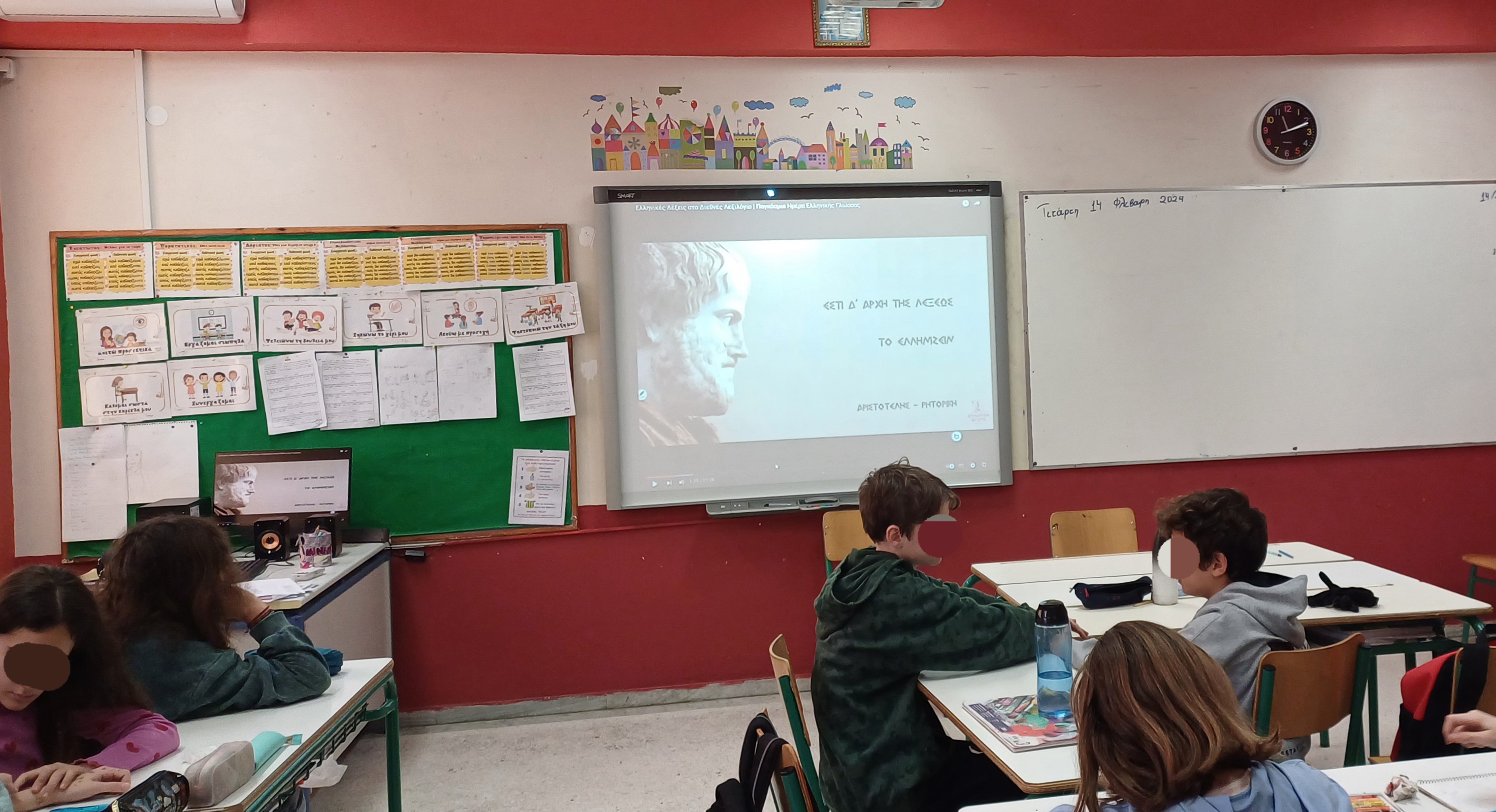 9 Φεβρουαρίου: Παγκόσμια Ημέρα της ελληνικής Γλώσσας από το 2017 και ημέρα μνήμης του εθνικού μας ποιητή Διονυσίου Σολωμού. Με αφορμή την ημέρα αυτή εκπαιδευτικοί και μαθητές των μεγαλύτερων τάξεων του σχολείου μας συμμετείχαν σε ενδιαφέρουσες δράσεις. Έτσι οι μαθητές των τεσσάρων τμημάτων της Ε΄ και Στ΄ τάξης, με τη καθοδήγηση της Δ/ντριας του σχολείου και των εκπαιδευτικών των τάξεων σε ένα δίωρο αφιέρωμα, αφού έκαναν ένα γλωσσικό ταξίδι στο χρόνο κι ενημερώθηκαν με εκπαιδευτικά βίντεο από το διαδίκτυο για την εξέλιξη της ελληνικής γλώσσας από τα ομηρικά χρόνια έως σήμερα, πολυτροπικά και διαδραστικά