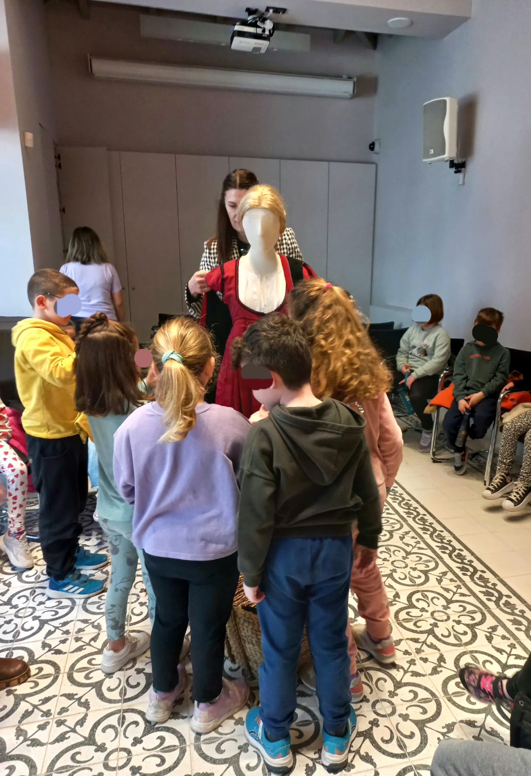 Με τη βοήθεια των υπεύθυνων κυριών της Έκθεσης έντυσαν μια κούκλα, την οποία ονόμασαν Λαμπρινή, με παραδοσιακή στολή και χόρεψαν ελληνικά παραδοσιακά τραγούδια. Τέλος, πριν φύγουν από την Έκθεση γεμάτοι όμορφες εικόνες κι αξέχαστες εμπειρίες έλαβαν και τα δωράκια τους: ένα ωραίο βιβλίο με τίτλο «Μια βόλτα στα κρυφά με παρέα από τα παλιά» και από μια χάρτινη απεικόνιση ενός αγοριού και ενός κοριτσιού που φορούν ελληνικές παραδοσιακές φορεσιές, για να τις χρωματίσουν.