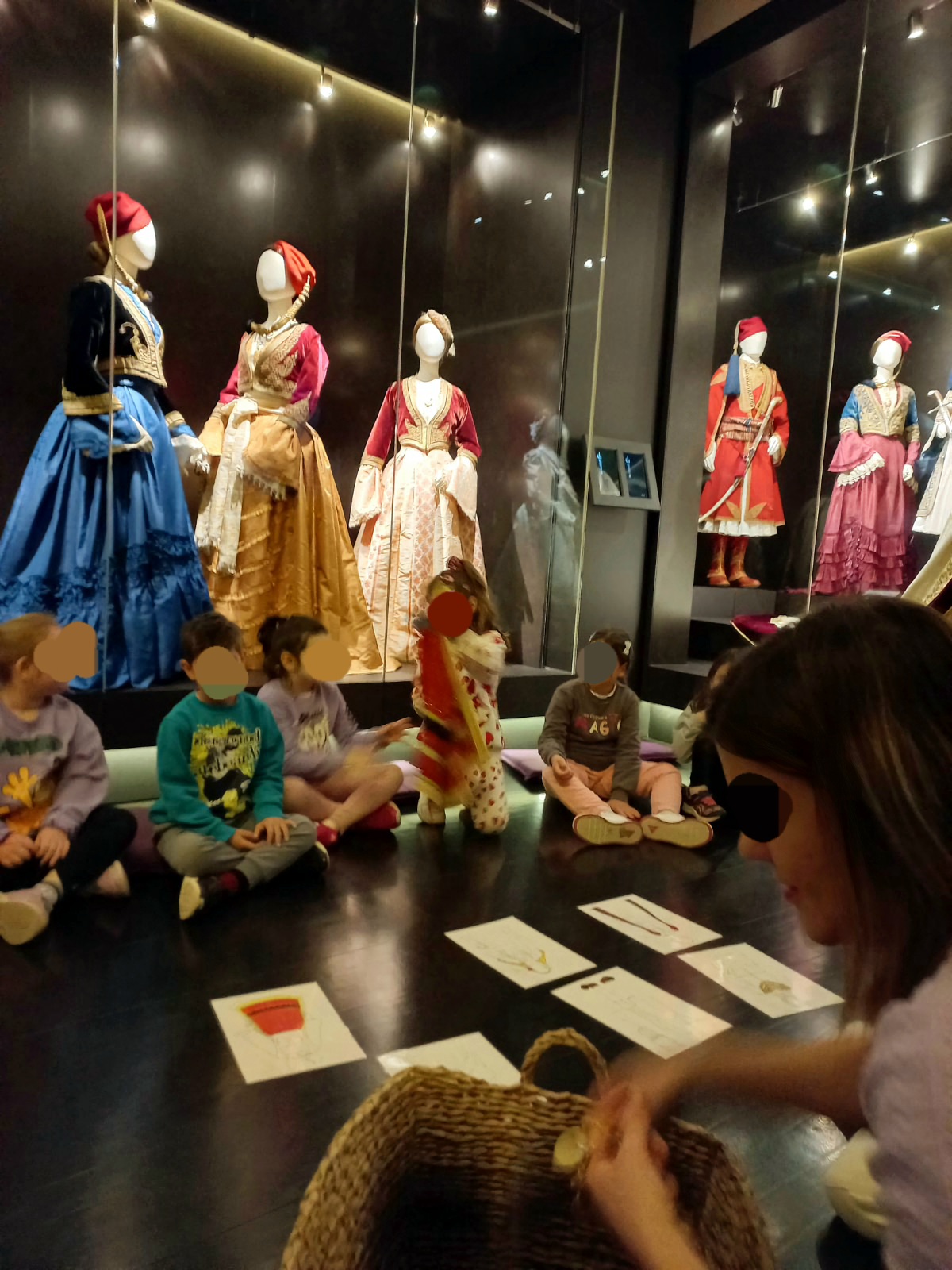 Οι μαθητές μας ήρθαν σε επαφή με ένα σπουδαίο κομμάτι της ελληνικής παράδοσης και του πολιτισμού μας μέσω της ξενάγησής τους στην Έκθεση αλλά και μέσα από ένα θεματικό εκπαιδευτικό πρόγραμμα κατάλληλο για την ηλικία τους. Γνώρισαν με βιωματικό και παιγνιώδη τρόπο τις ελληνικές φορεσιές και τα κοσμήματα που τις στολίζουν, κι εξοικειώθηκαν με την τέχνη, τα υλικά και τη μέθοδο κατασκευής των παραδοσιακών αυτών ενδυμασιών.