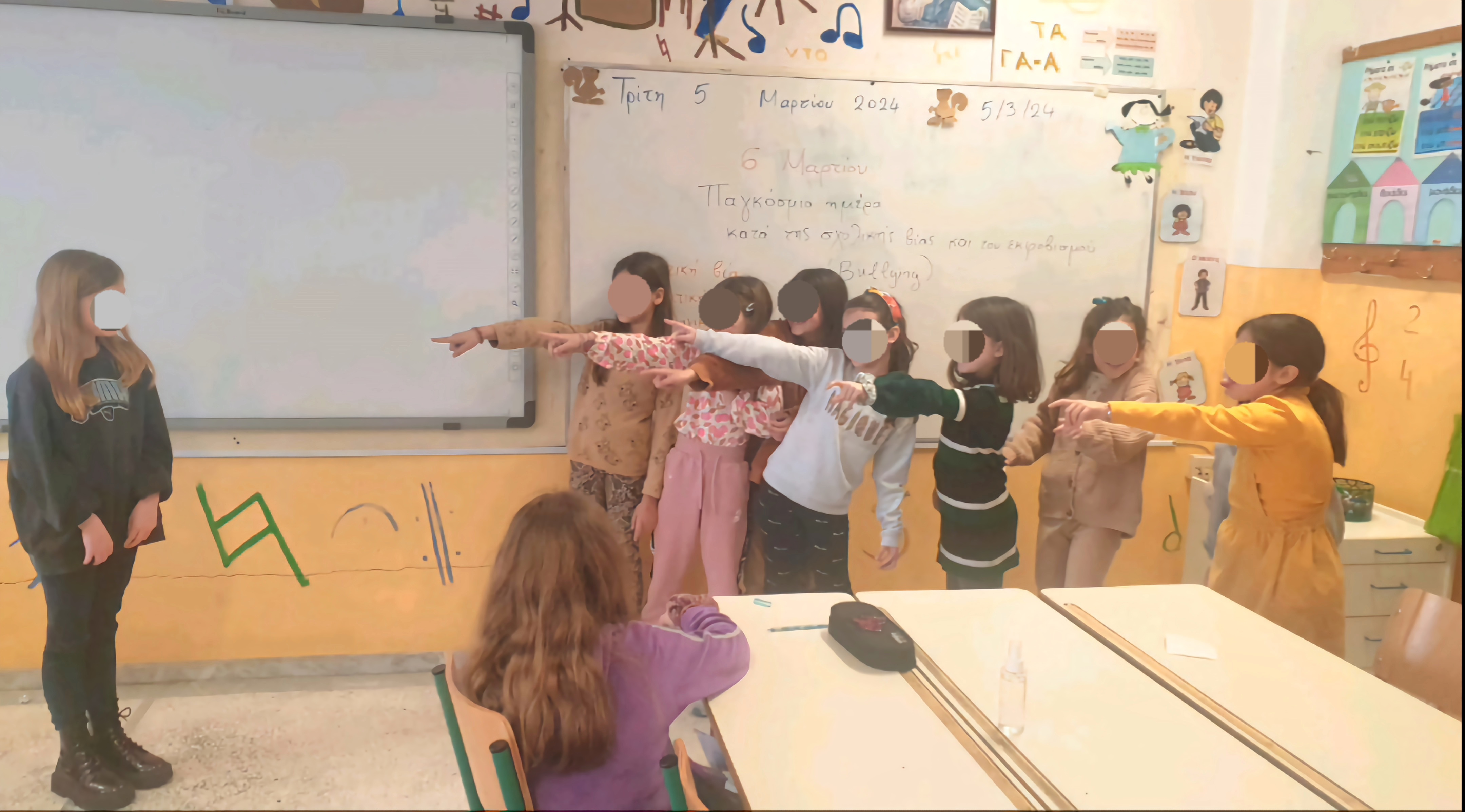 Με αφορμή την Παγκόσμια Ημέρα Σχολικού Εκφοβισμού (6 Μαρτίου) και την ευαισθητοποίηση των μαθητών στο πλαίσιο του μαθήματος της Θεατρικής Αγωγής η εκπαιδευτικός Ελένη Μπουμποπούλου και οι μαθητές των τάξεων Α΄, Β΄, Γ΄ και Δ΄ διάβασαν ιστορίες με θέμα το σχολικό εκφοβισμό. Τα βιβλία τα οποία διαβάστηκαν σε κάθε τάξη ήταν «Ο μυτόγκας» της Ειρήνης Καμαράτου-Γιαλλούση (Α΄τάξη), «Ο νταής του σχολικού» της Μαρίας Ρουσάκη (Β΄τάξη), «Ο Ορφέας και οι νταήδες με τα κίτρινα ποδήλατα» του Μερκούριου Αυτζή (Γ΄τάξη), και «Σιγά τα αυγά» του Κώστα Πούλου (Δ΄τάξη). Μετά την ανάγνωση, η εκπαιδευτικός και οι μαθητές συζήτησαν τις μορφές με τις οποίες εμφανίζεται ο εκφοβισμός: λεκτικός, σωματικός, ψυχολογικός, κοινωνικός, διαδικτυακός, ρατσισμός κ.λ.π. αλλά και για το ρόλο και τα χαρακτηριστικά που έχουν τα εμπλεκόμενα μέρη: θύτης, συνεργοί θύτη, θύμα, παρατηρητής/-ές και ενήλικας βοηθός.
